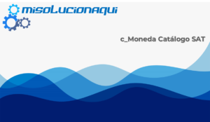 Monedas de uso mas común c_Moneda Descripción Decimales MXN Peso Mexicano 2 USD Dólar americano 2 EUR Euro 2 Fuente: SAT Catálogo completo de monedas c_Moneda Descripción Decimales AED Dirham de EAU 2 AFN Afghani 2 ALL Lek 2 AMD Dram armenio 2 ANG Florín antillano neerlandés 2 AOA Kwanza 2 ARS Peso Argentino 2 … Sigue leyendo c_Moneda Catálogo SAT